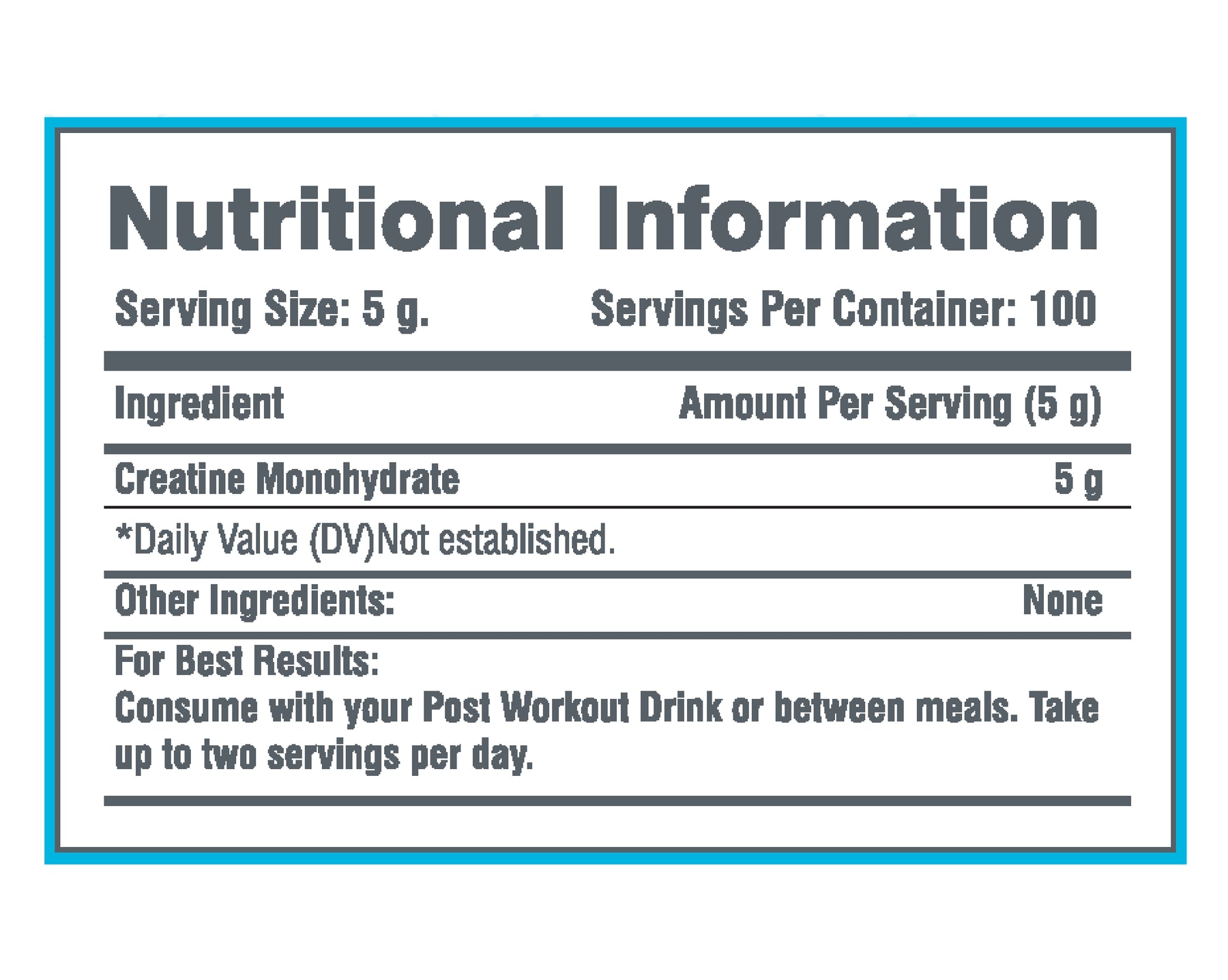 Best of all? It’s unflavored, so you can take it however you like it. With your coffee, post-workout protein shake, or straight from the scoop, it’s your choice. Just get it in, put in the reps, and our creatine monohydrate will do the rest. Fuel your body with what it needs to power through extended periods of high-level performance. Give your body what it needs to build more muscle mass and strength. Pharmaceutical Grade Creatine Monohydrate. Pure Performance. Pure Gains.